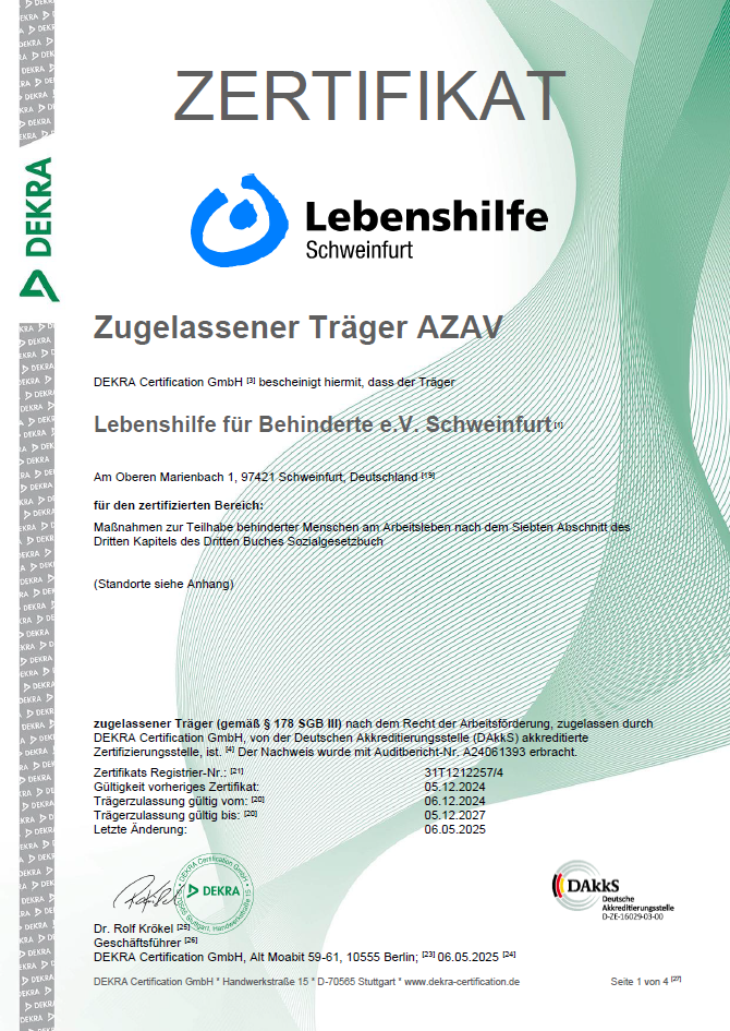 Zertifikat Zugelassener Träger AZAV